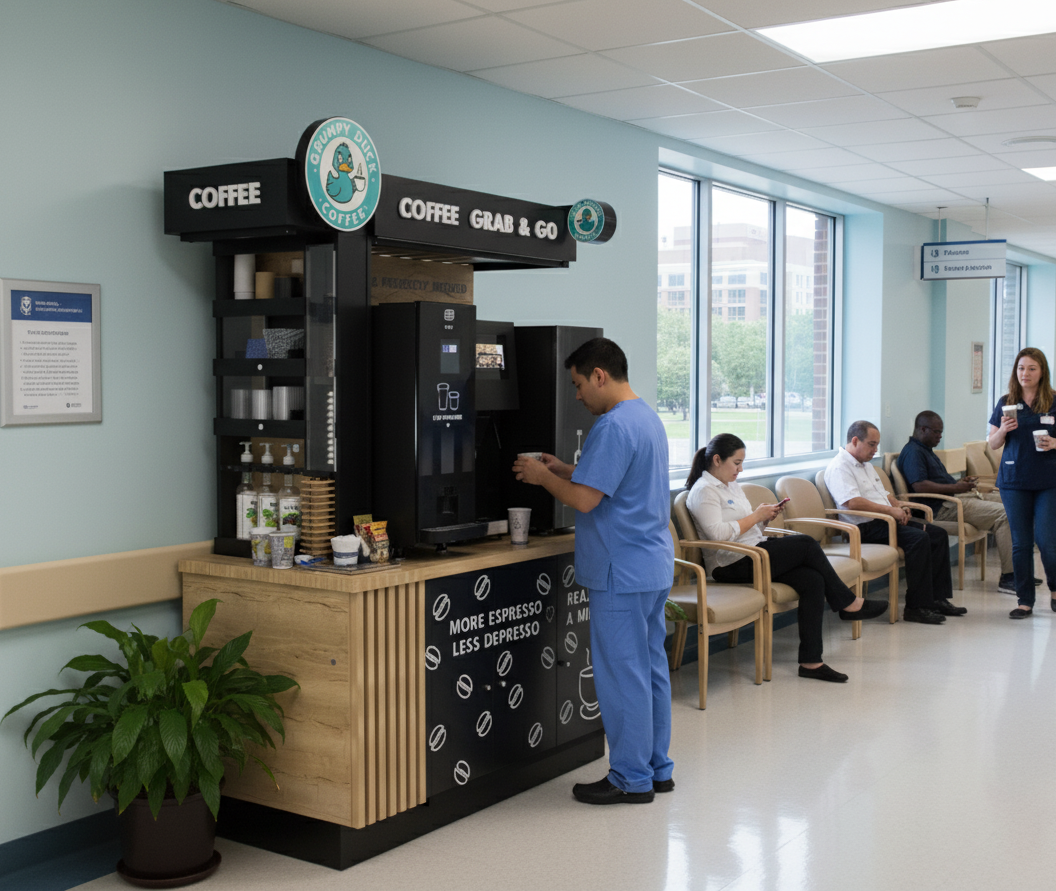 Grumpy Duck Coffee is a U.S. manufacturer of smart, fully automated self-service coffee kiosks that serve premium hot and iced beverages.